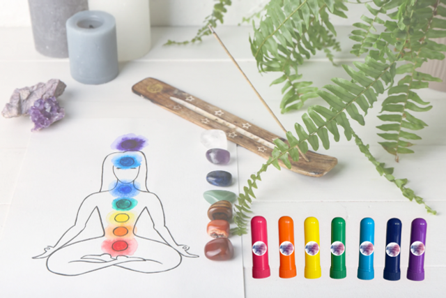 Ce coffret contient 7 sticks olfactifs, chacun associé à un chakra et une huile essentielle vibratoire. Chaque stick est identifiable par la couleur du chakra correspondant.